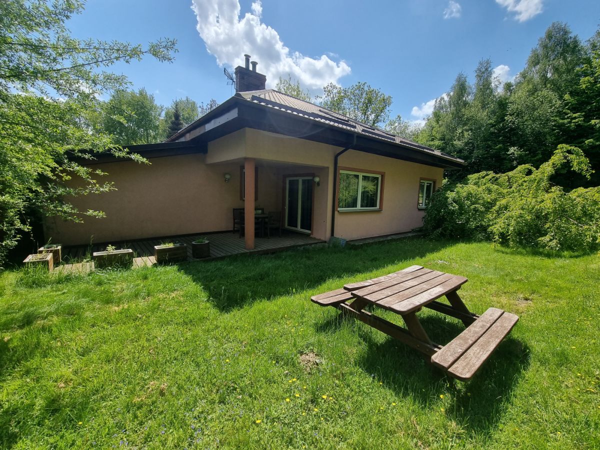 wiatrołap, hol, jasna i zamykana KUCHNIA (11,20 m2) połączona z równie jasną JADALNIĄ (15 m2); GABINET/SYPIALNIA (11,10 m2); wc z oknem (2,10 m2); jasna ŁAZIENKA (4,80 m2, prysznic); przestronna SYPIALNIA (14,30 m2) oraz duży i jasny SALON (27 m2, kominek) z wyjściem na drewniany taras i do ogrodu.
