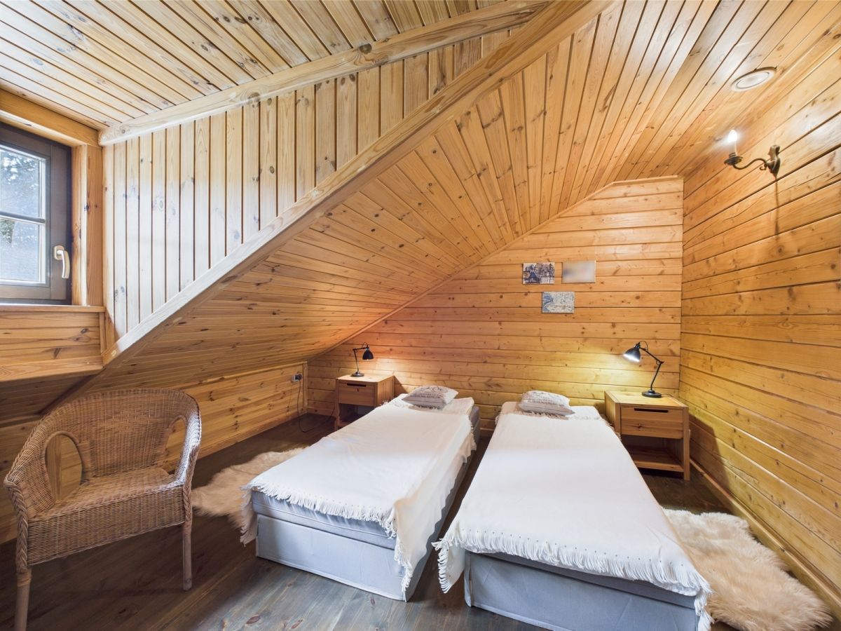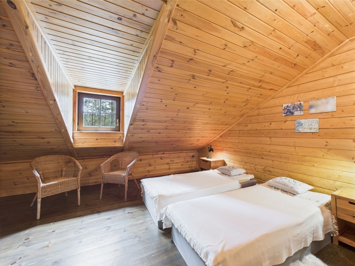 - ściany wewnętrzne konstrukcyjne i działowe z bali drewnianych 7 cm,