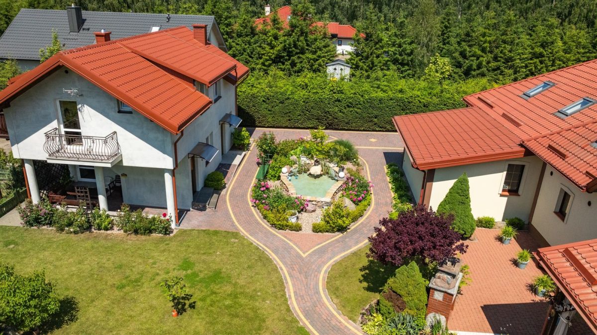 Pergola, fontanna, zorganizowane miejsce na ognisko i plac zabaw nadają pełnej funkcjonalności rekreacyjnej.