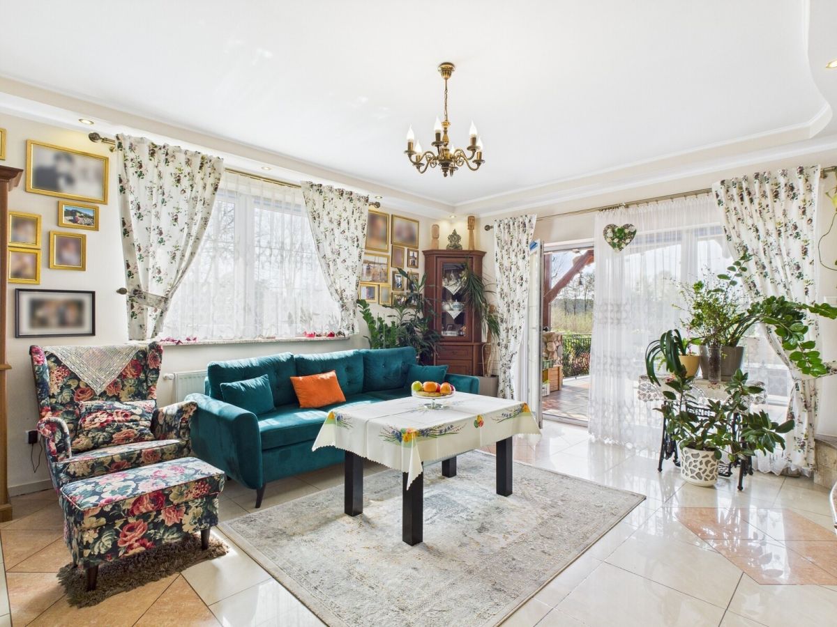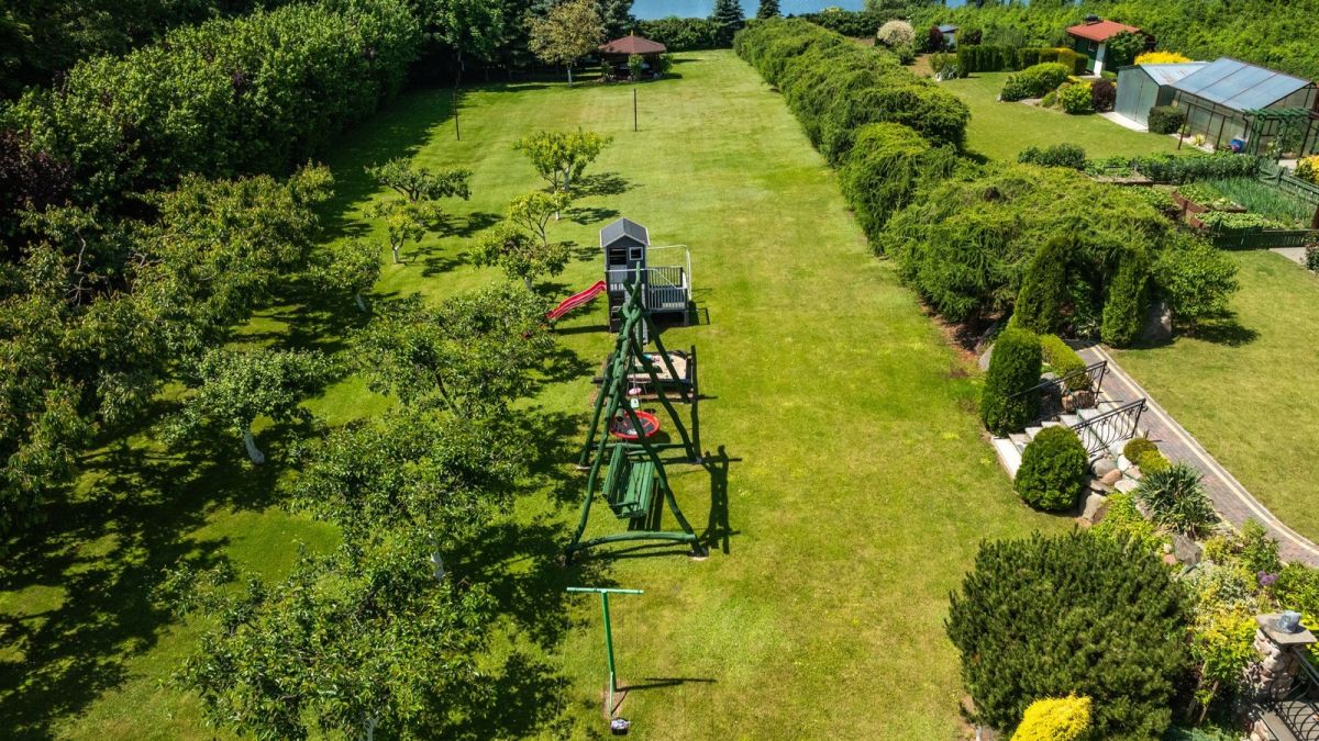 Działka wielkości ok. 0,8 HA, w całości jest ogrodzona, starannie utrzymana z wieloletnimi drzewami, krzewami oraz kwiatami.