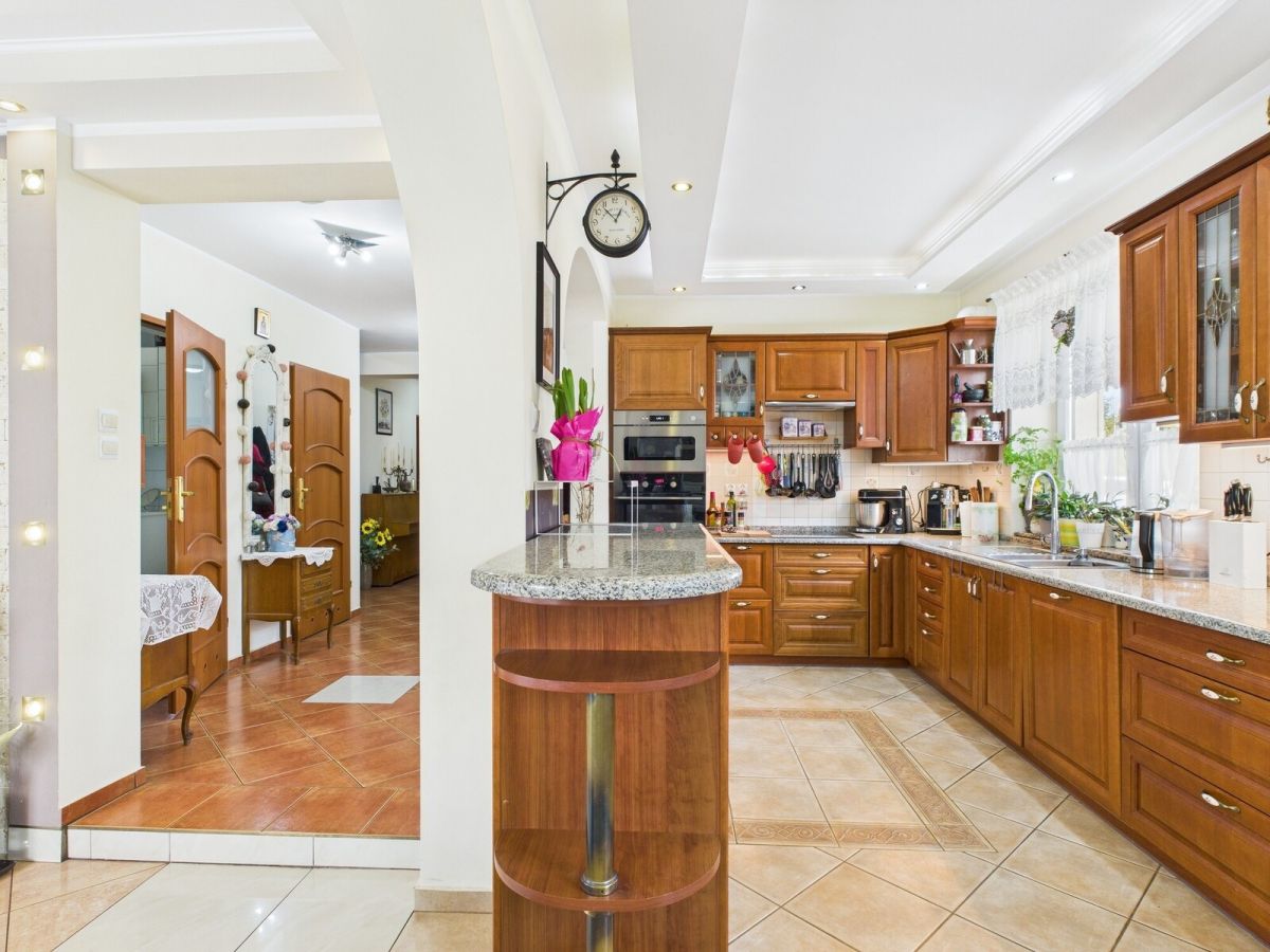 - kuchnia otwarta z meblami oraz sprzętem AGD w zabudowie