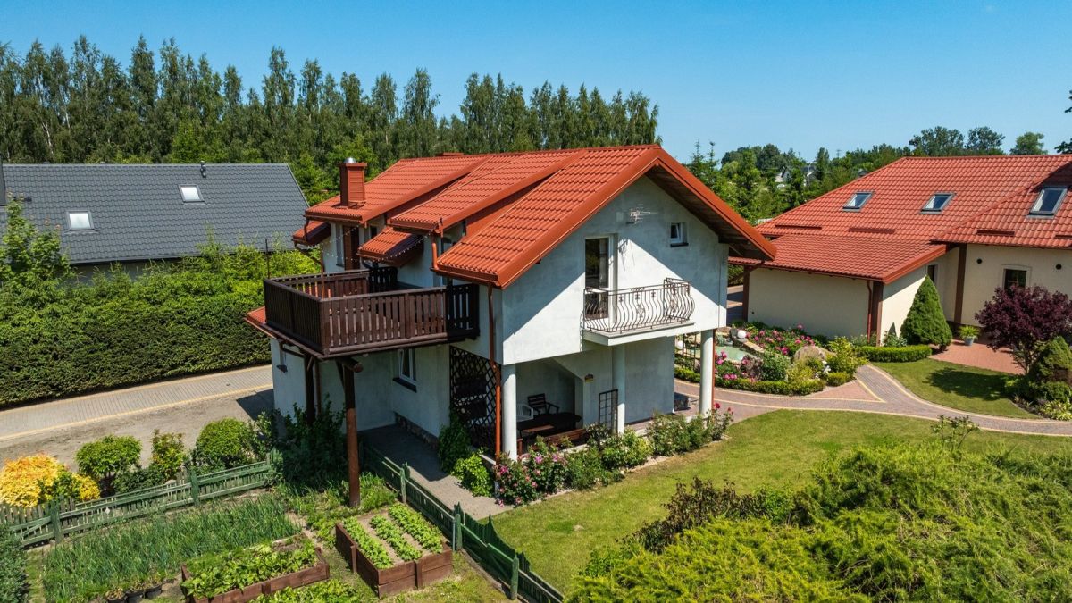 Większy dom (335 m2 )ma charakter mieszkalno-pensjonatowy, mniejszy (125 m2) spełnia funkcję pensjonatu.