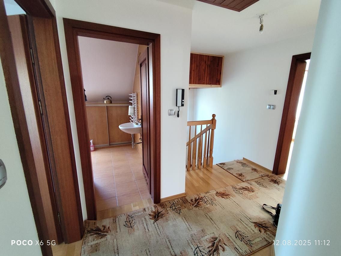 Przestronny dom wolnostojący o powierzchni użytkowej 136,60 m2 (powierzchni całkowitej ok. 190 m2) posadowiony na zagospodarowanej działce o powierzchni 570 m2. Posesja jest ogrodzona i zabezpieczona bramą automatyczną. Dach pokryty dachówką, ocieplenie ścian 10 cm styropianu + tynk silikonowy. Okna dwuszybowe, drewniane, wykonane przez rzemieślnika. Drzwi wewnętrzne drewniane, pełne. Drzwi wejściowe do budynku metalowe, antywłamaniowe. Ogrzewanie i ciepła woda użytkowa z kotła gazowego - dwufunkcyjnego. W całym domu rozmieszczone grzejniki + ogrzewanie podłogowe w łazience, kuchni i korytarzu na parterze budynku.