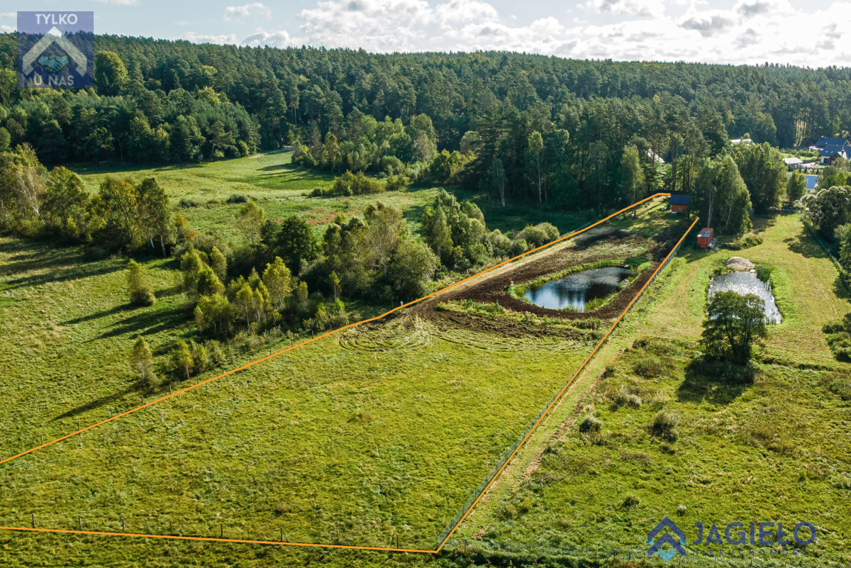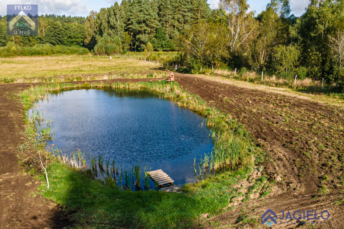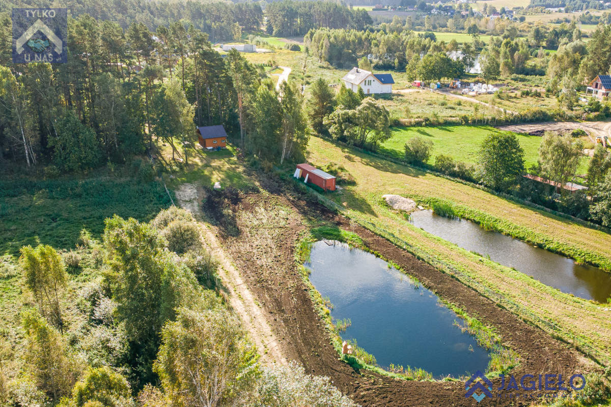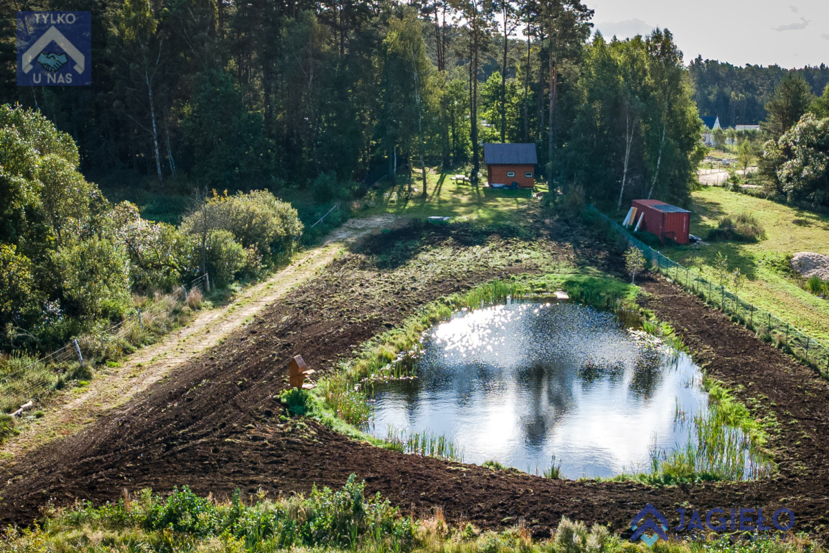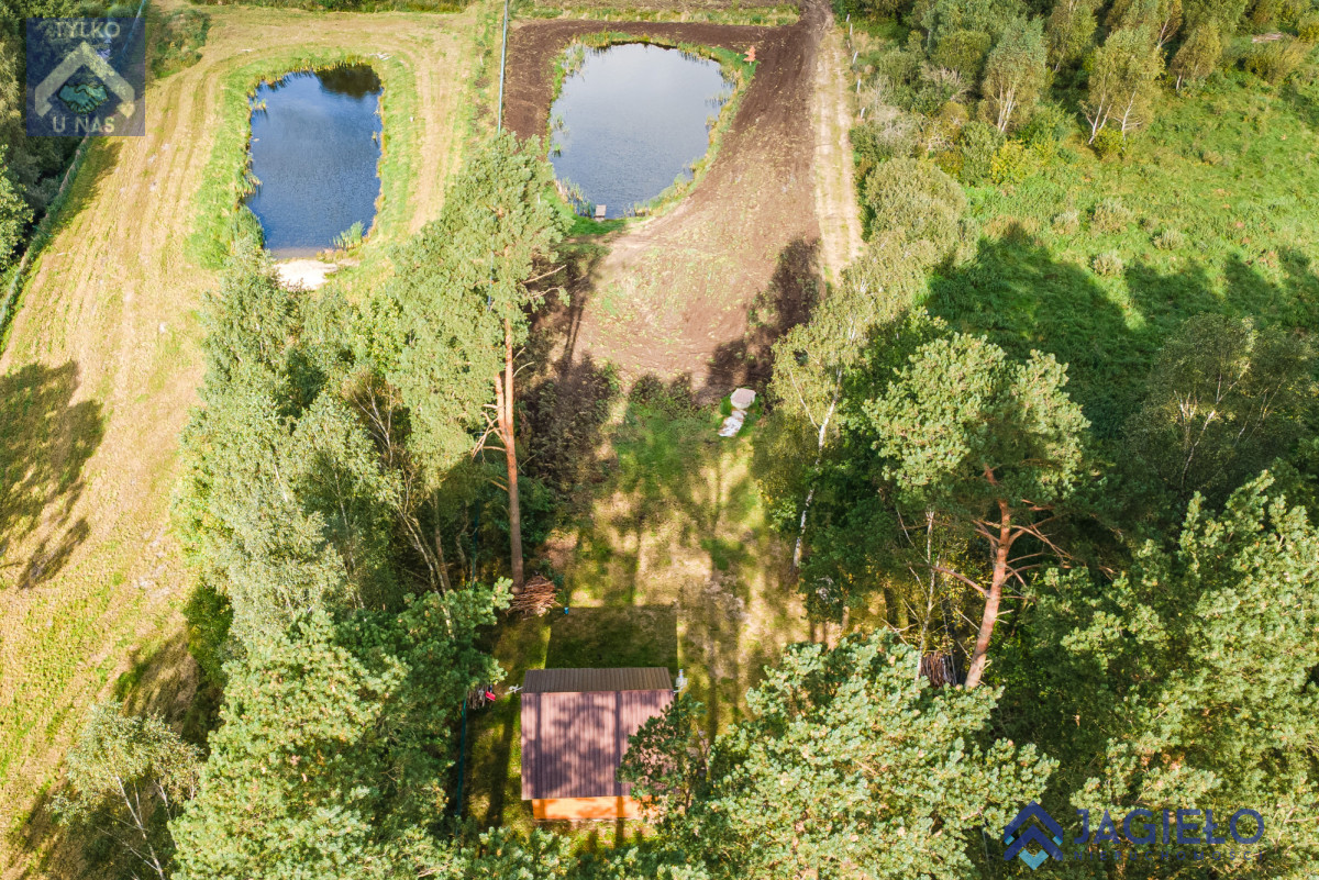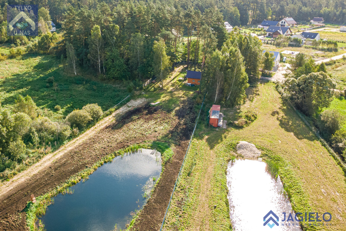 Działka z drewnianym domkiem w cichym miejscu z własnym kawałkiem lasu.