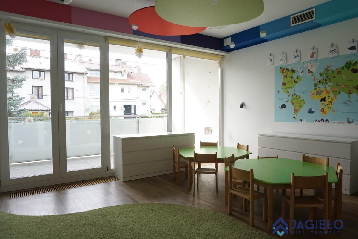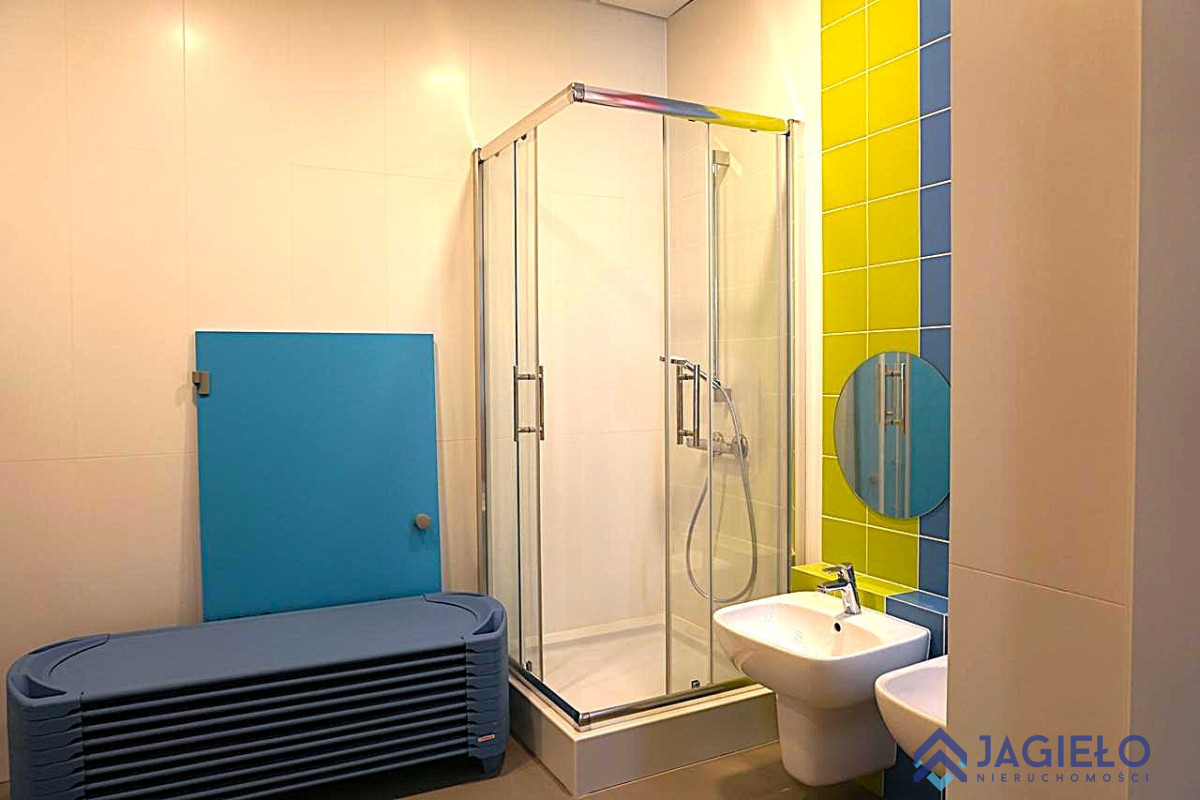 Powierzchnia usługowa 105,52m2 na która składa się: sala przedszkolna(37m2), szatnia(32m2), 4 łazienki, pomieszczenie socjalne, pomieszczenie cateringu.