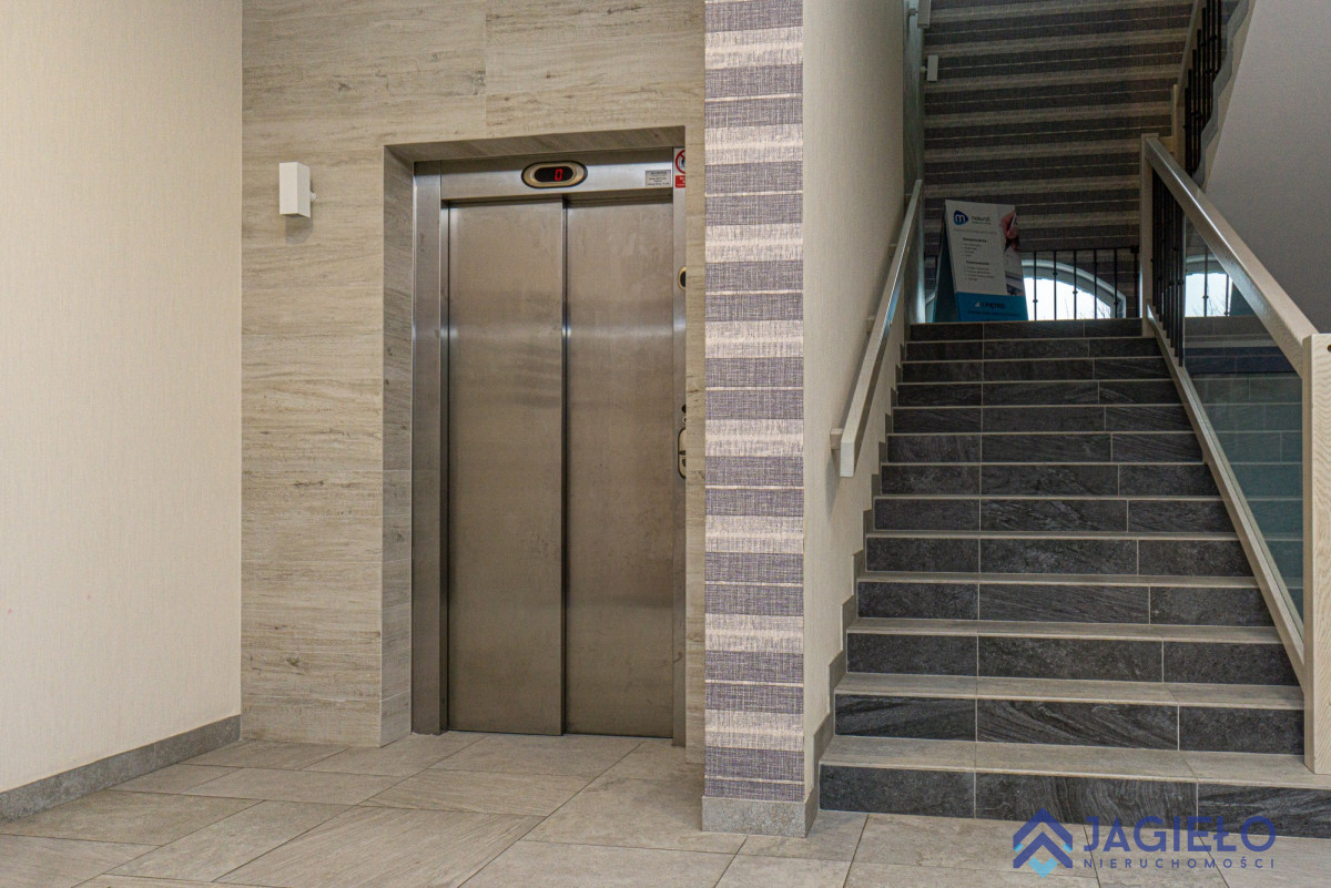 usytuowany jest na I piętrze, posiada wejście z klatki schodowej z windą.