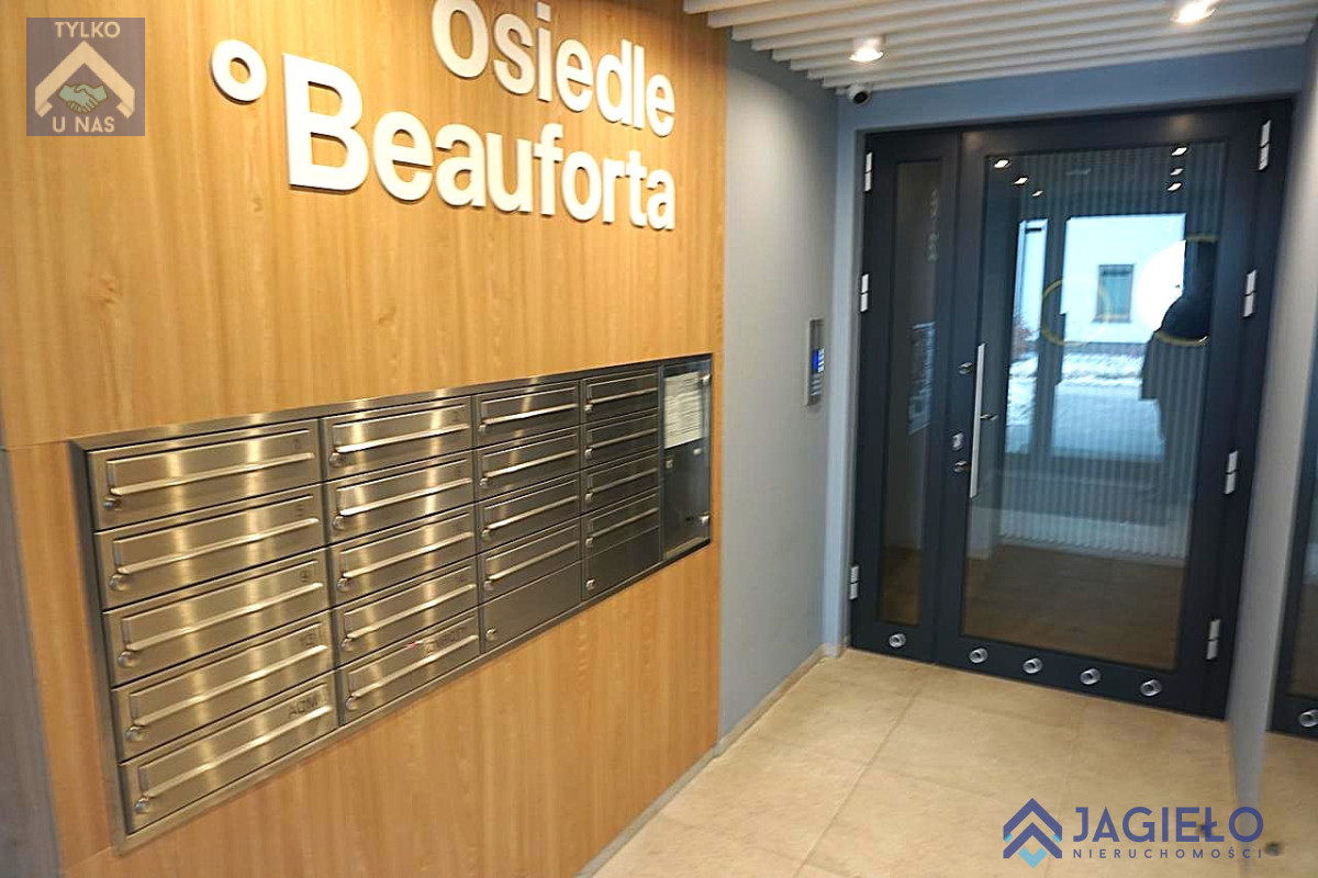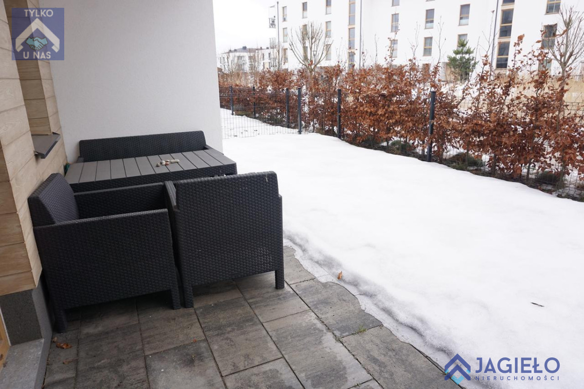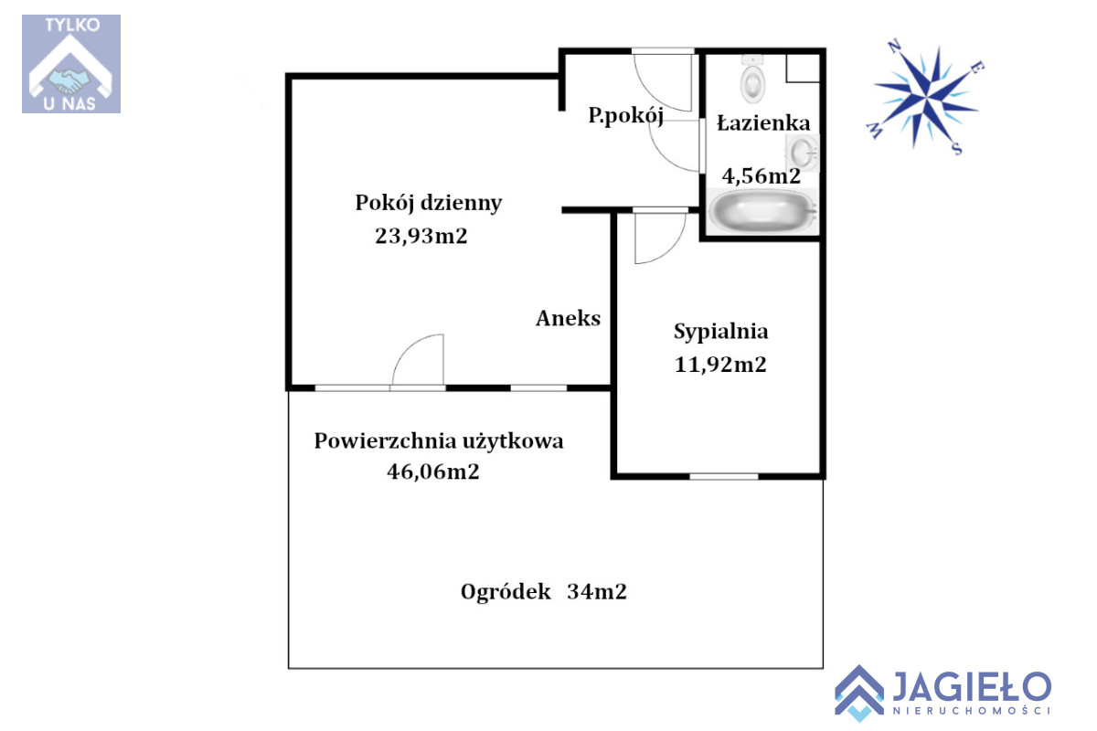 Mieszkanie o powierzchni użytkowej 46,06m2 położone na parterze, składa się z pokoju dziennego z aneksem kuchennym, sypialni, łazienki oraz przedpokoju. Z pokoju wyjście do ogródka o powierzchni 34m2.