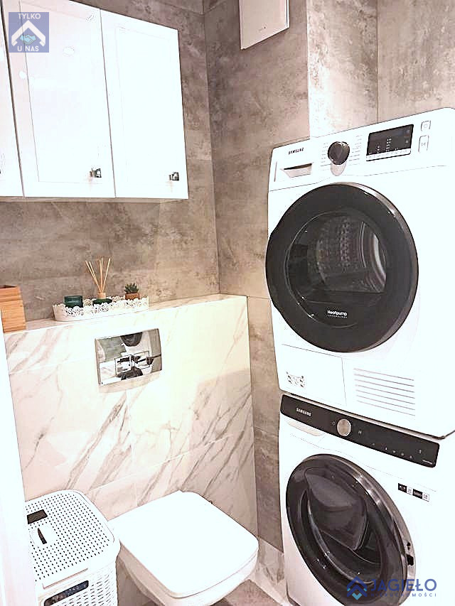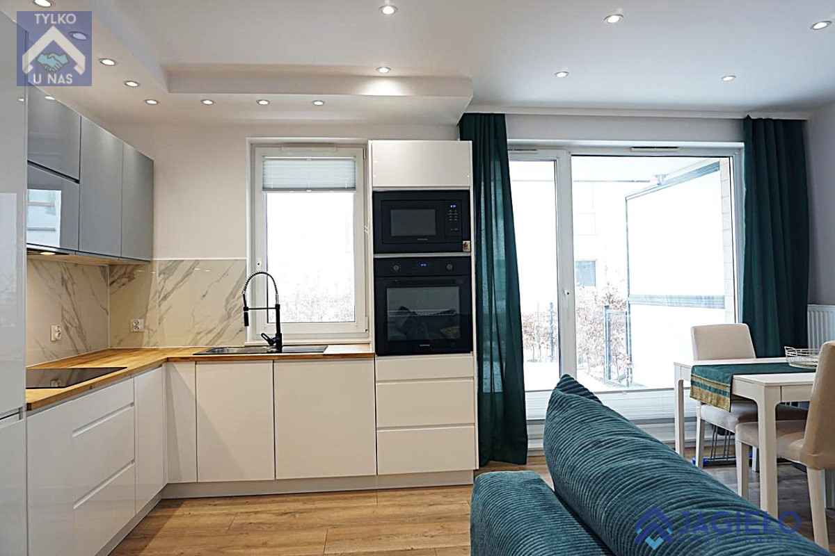 W cenie mieszkania zabudowa kuchni i wyposażenie: lodówko-zamrażarka Haier, zmywarka Bosch, płyta indukcyjna Samsung, piekarnik Samsung, mikrofala Samsung.