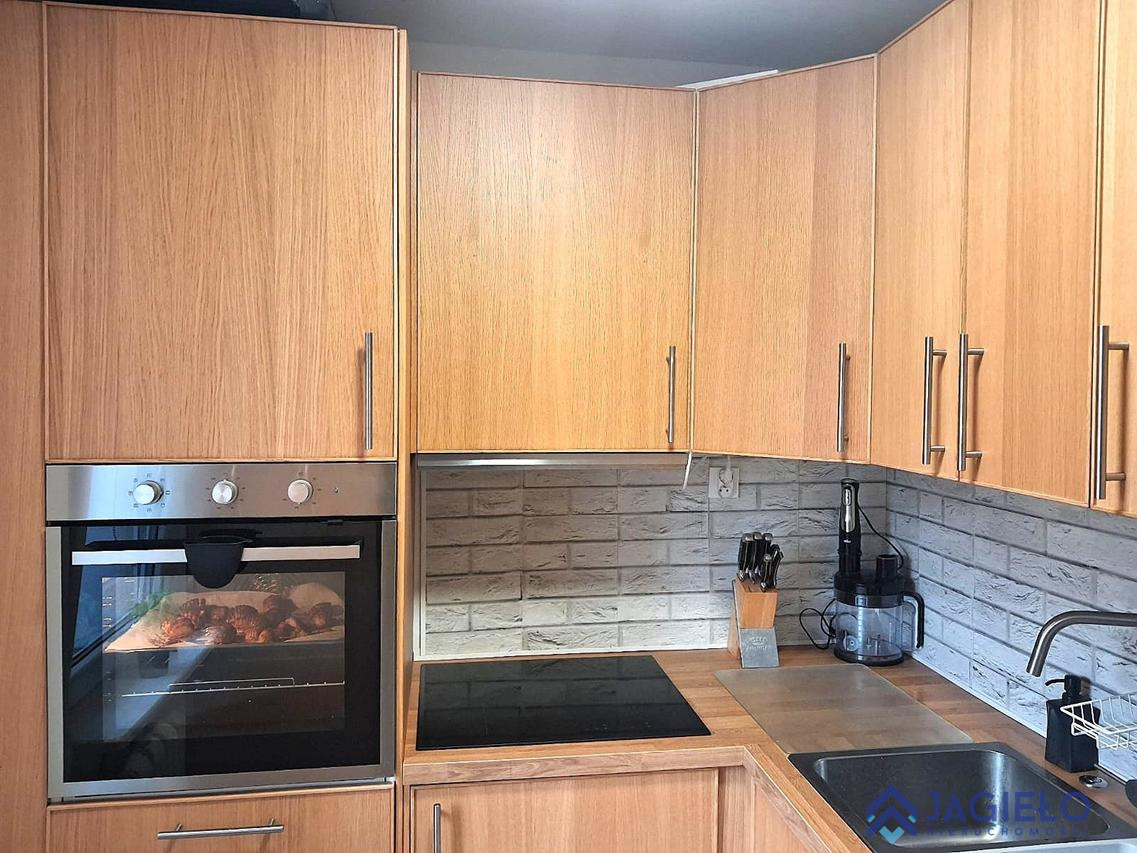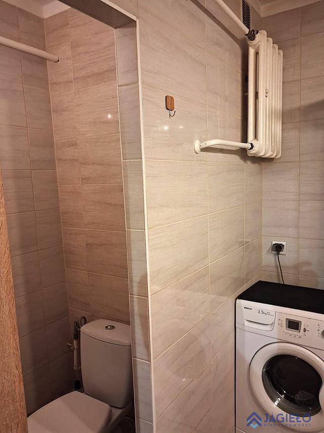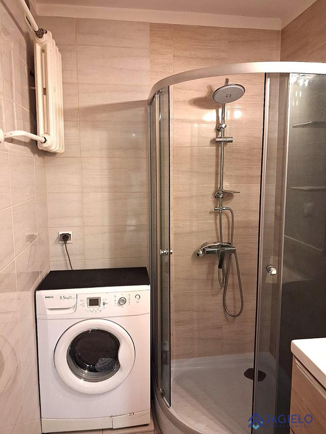 W kuchni meble robione na wymiar, lodówka, kuchenka, piekarnik, młynek do mielenia odpadków zamontowany w zlewie. W łazience prysznic i pralka. W pokoju wygodna, duża szafa w zabudowie.