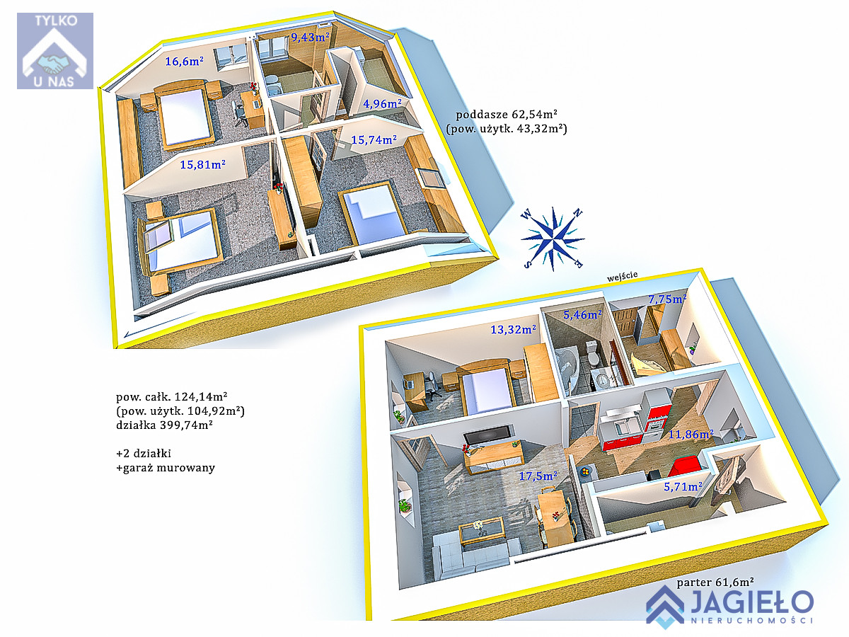 parter (61,6m2) - w księdze wieczystej ujęta jest tylko powierzchnia parteru