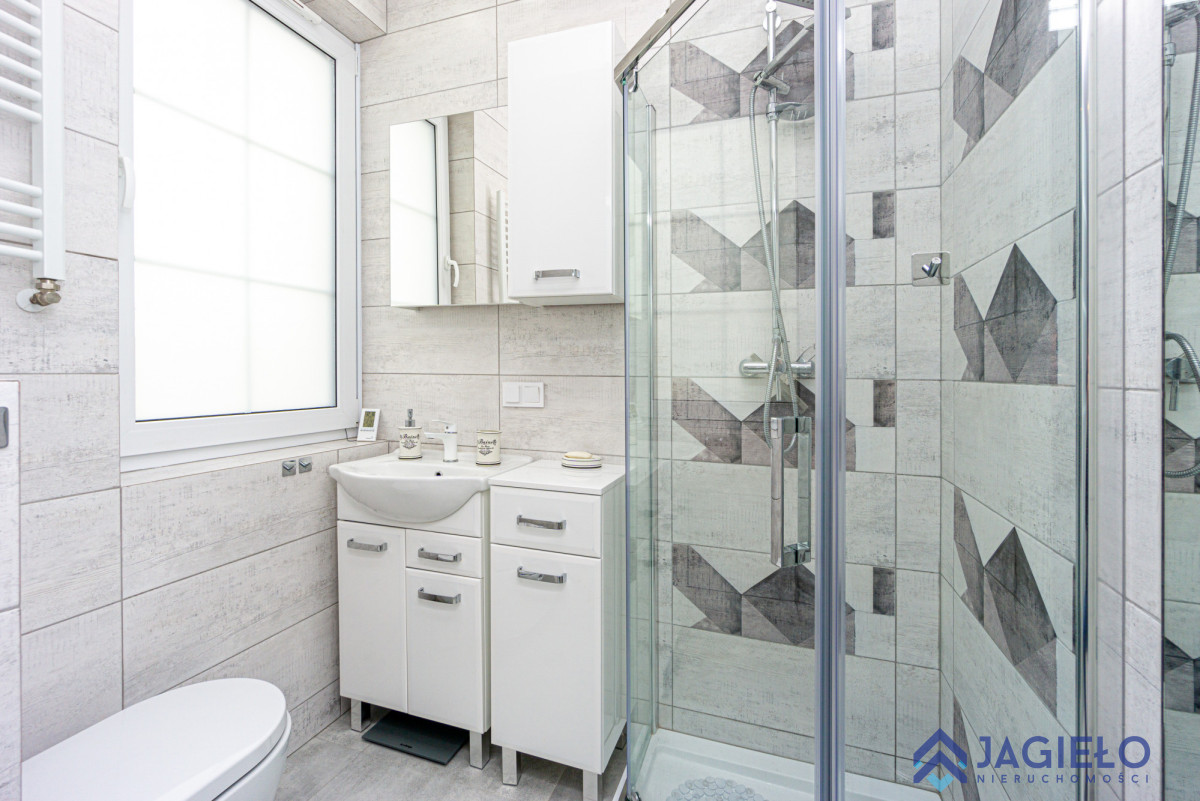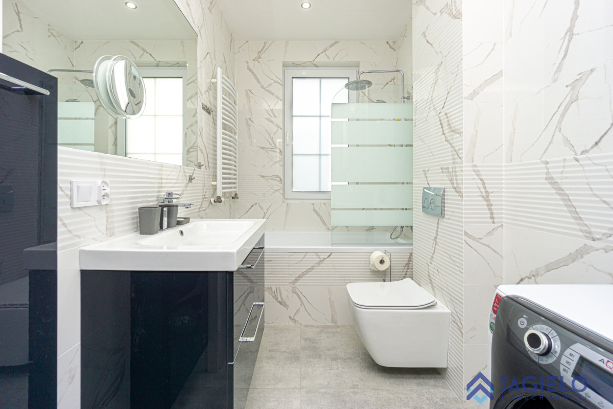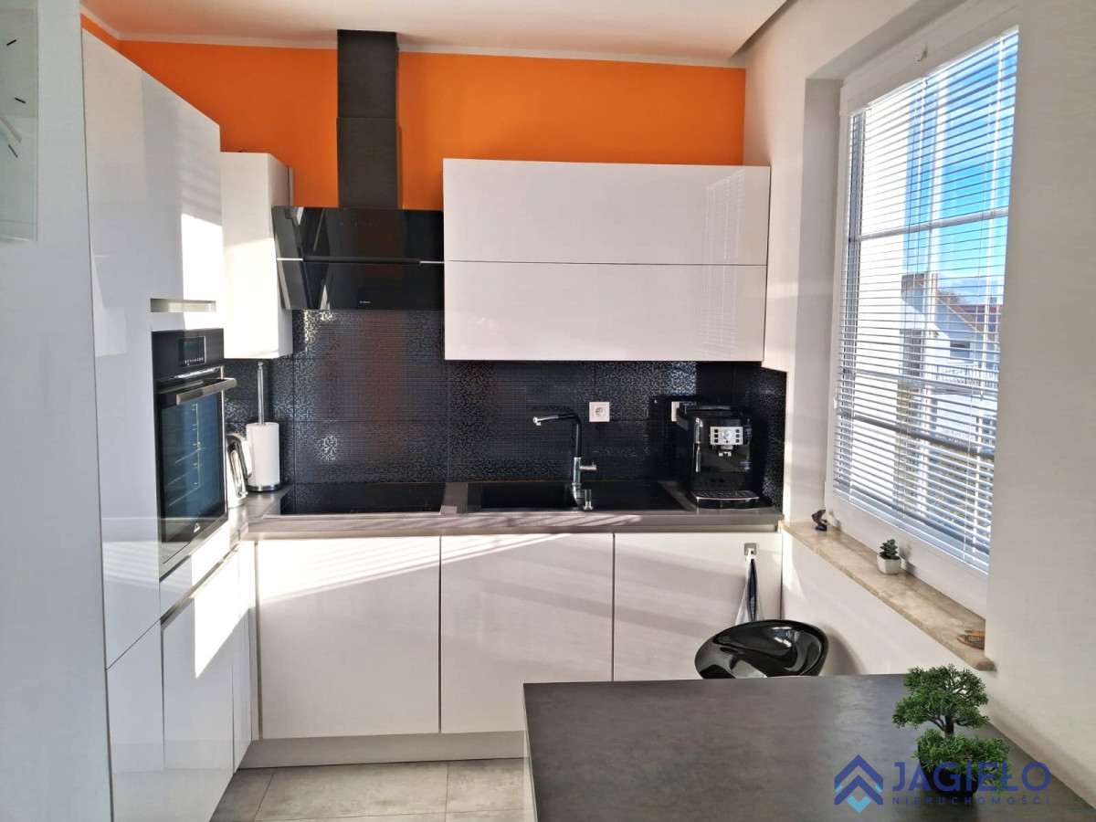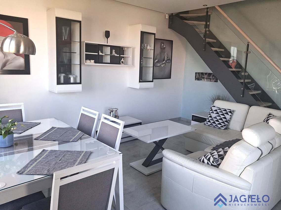 Mieszkanie o powierzchni całkowitej 84,53 m2 (powierzchnia użytkowa 72,01m2), oddane do użytku w 2019 roku. Wykończone w wysokim standardzie, przy użyciu dobrej jakości materiałów. Okna PCV ze szprosami, rolety wewnętrzne. Na podłogach wysokiej jakości gres 60x60. Zabudowa kuchenna niemieckiej firmy Mobilia, AGD marki Bosch i Design Line, ekspres ciśnieniowy De Longhi.